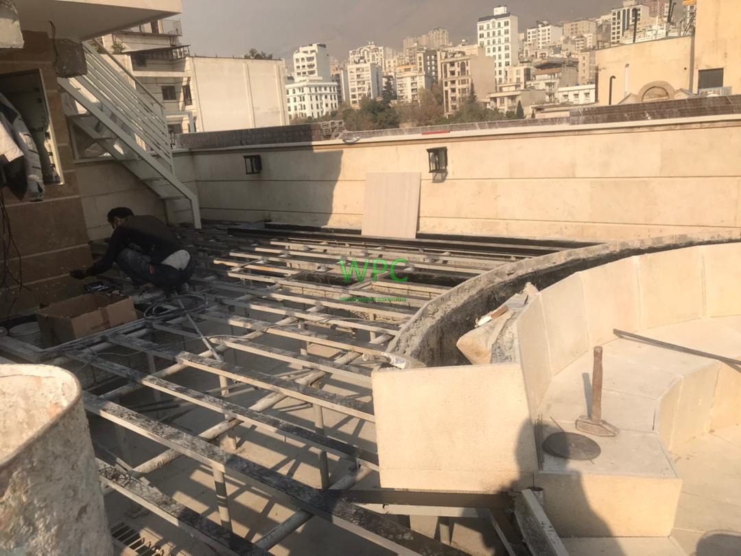 زیرسازی پروژه روف ساختمان مسکونی در آجودانیه متراژ کار : ۹۴ مترمربع جنس خریداری شده جهت پوشش کف روف : دک عرض ۱۴.۵ چوب پلاست رنگ سدری تاریخ اجرا : آذرماه ۱۴۰۰